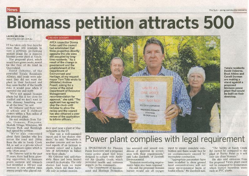 The scientific resources listed directly below are in the hands of the Gold Coast City Council and relevant state government departments. The Yatala community were keen to ensure that KEY ISSUES were tabled and fully appreciated before the appeal case proceeded. The issues are extremely serious. Surprisingly the Council lawyers decided not to fight an appeal which Phoenix raised against the Council. The lawyers said they had “no scientific evidence that the biomass plant was a health hazzard”!!!!!!!!!